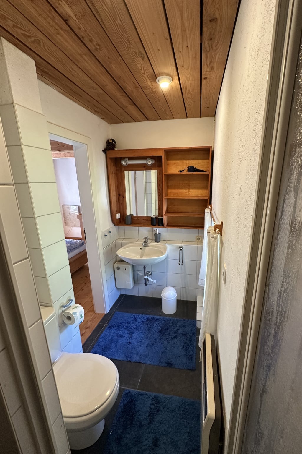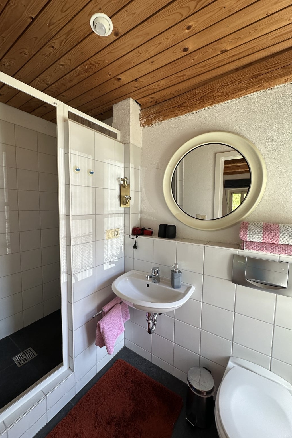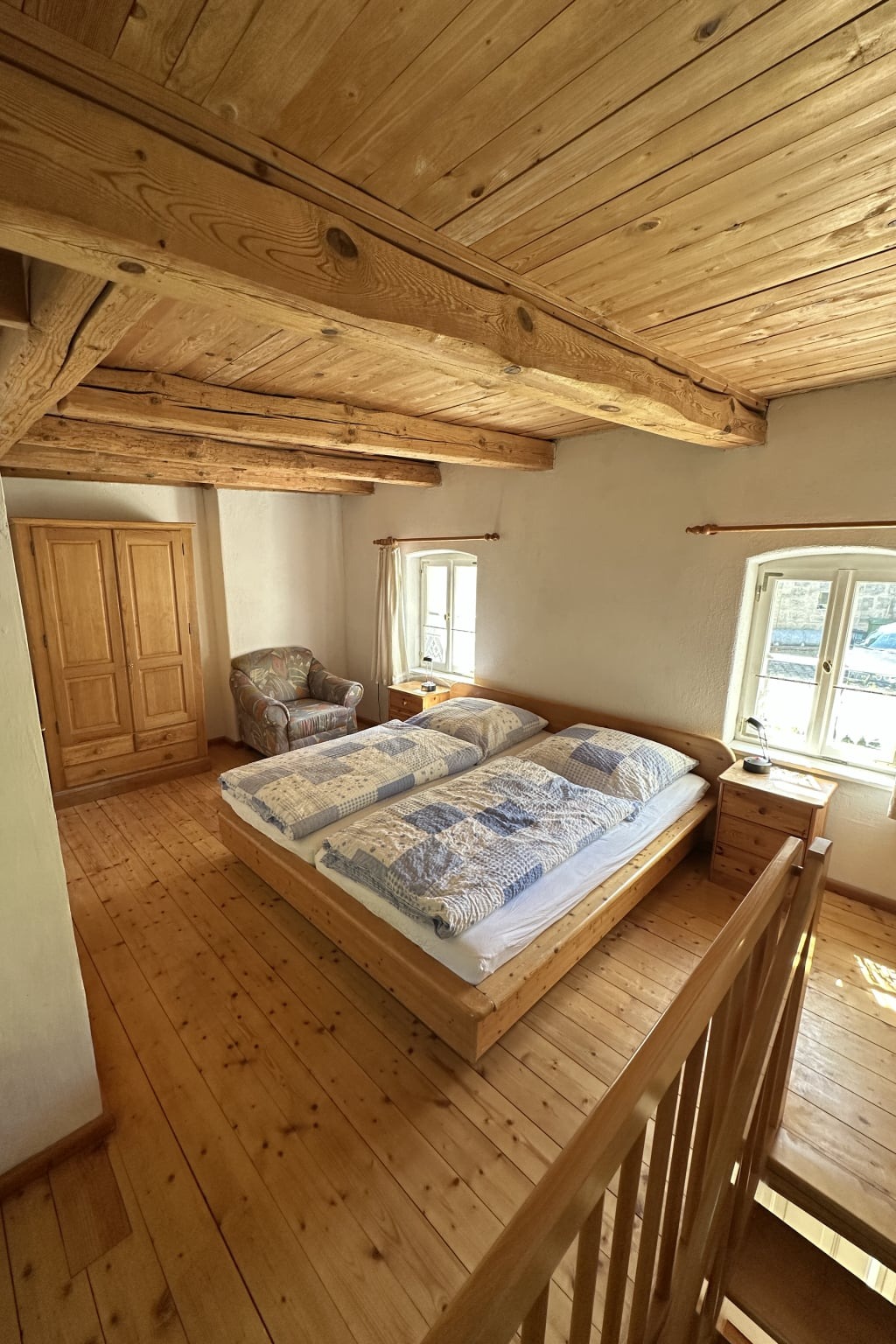 Im Obergeschoss jeder Wohnung finden Sie ein Doppelbett sowie ein Badezimmer mit Dusche und WC.